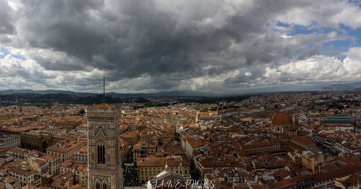 Blick über Florenz mit dem Campanille di Giotto im Vordergrund